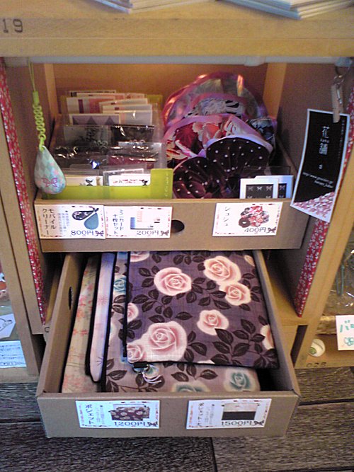 ↑花舗の蝶柄グッズ販売中