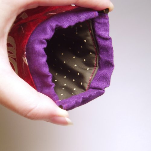 同じ柄で赤、青、薄緑の3色を各2点ずつ作ってます。裏地は白地にドットで、赤と桃の2種類。